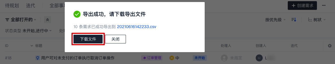 如需导出筛选后的全部事项,在页面右上角点击「···」。点击下拉菜单中的「导出当前筛选需求」。