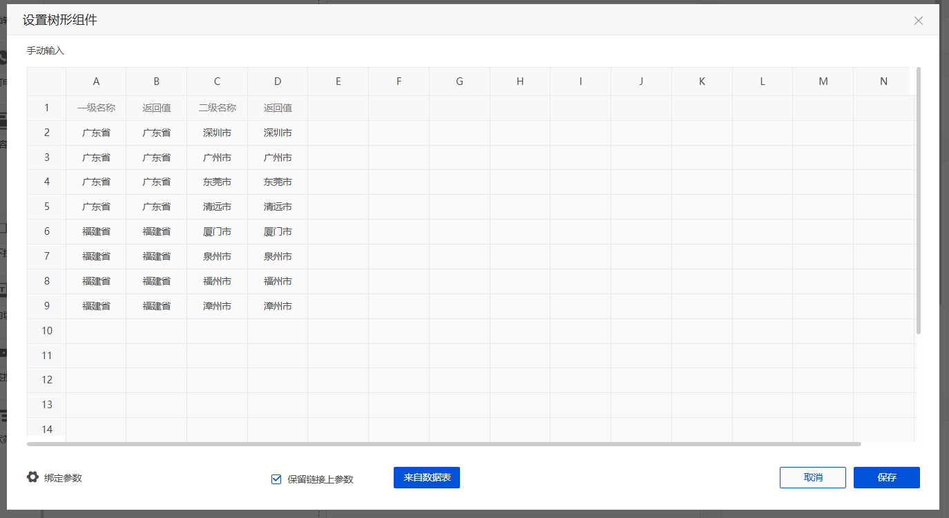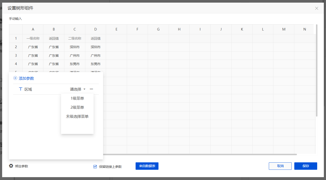 选择参数进行绑定,手动数据和数据表数据参数绑定规则相同。