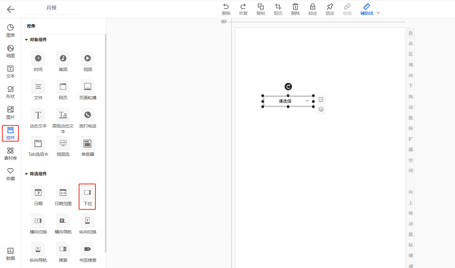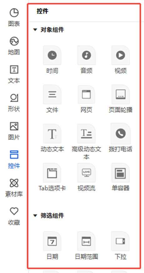 1. 进入简报编辑页面,单击左侧对象栏控件组件。