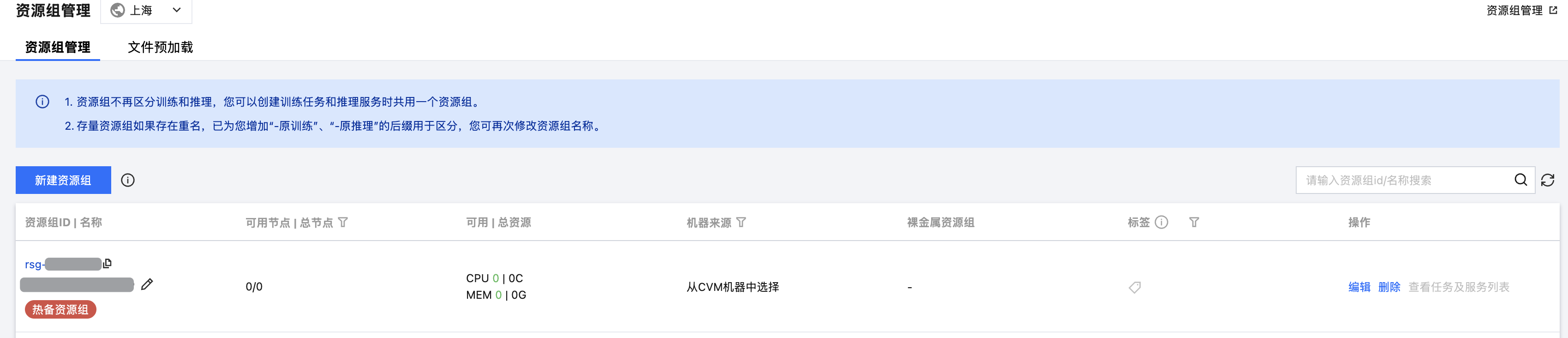 TI-ONE 资源组支持开启“热备资源组”功能,当 CVM 机器出现异常导致任务/服务无法正常运行时,平台会将“热备资源组”中的可用节点移动至异常节点所在的资源组,保障任务/服务快速恢复。如下图所示:
