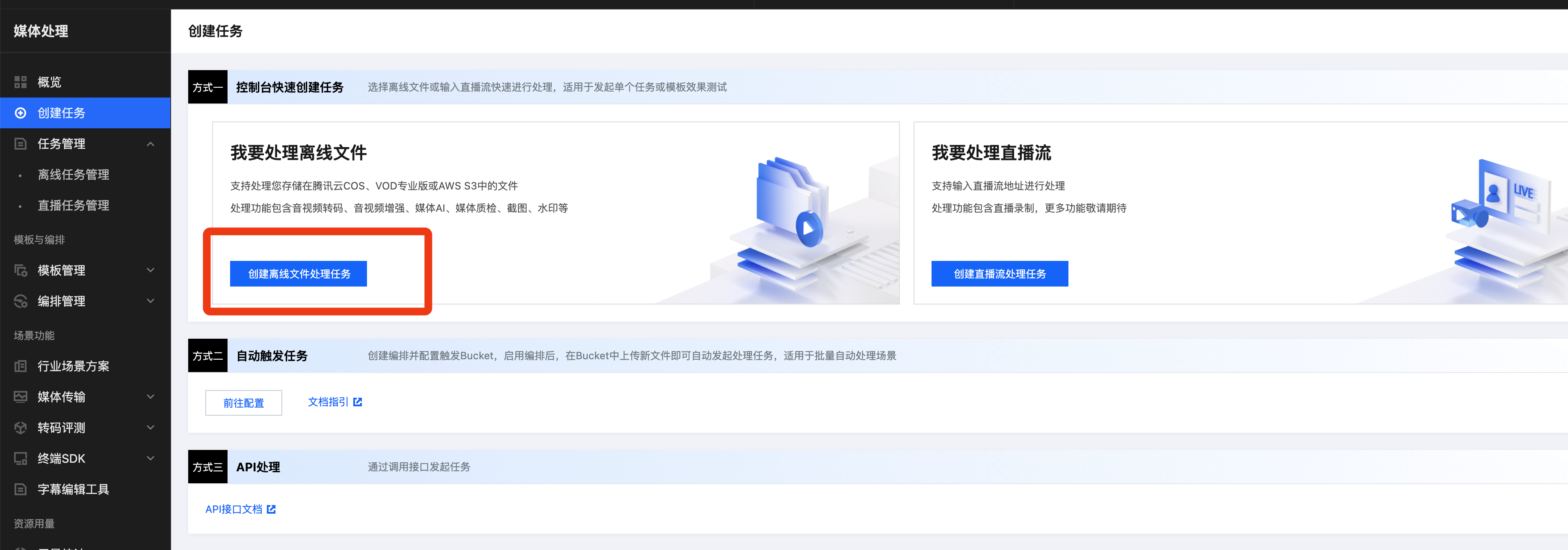 控制台发起任务需要使用预设模板(预设精彩集锦参数)。由于集锦存在一些特殊参数无法在模板中配置,可能会影响精彩集锦的效果,因此更推荐您使用 API 的方式接入。